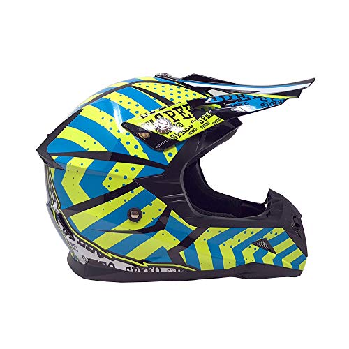 MYK 9152 Motorcycle Adults Helmet Off Road MX ATV Dirt Bike Motocross UTV, Shiny Yellow and Blue, Large